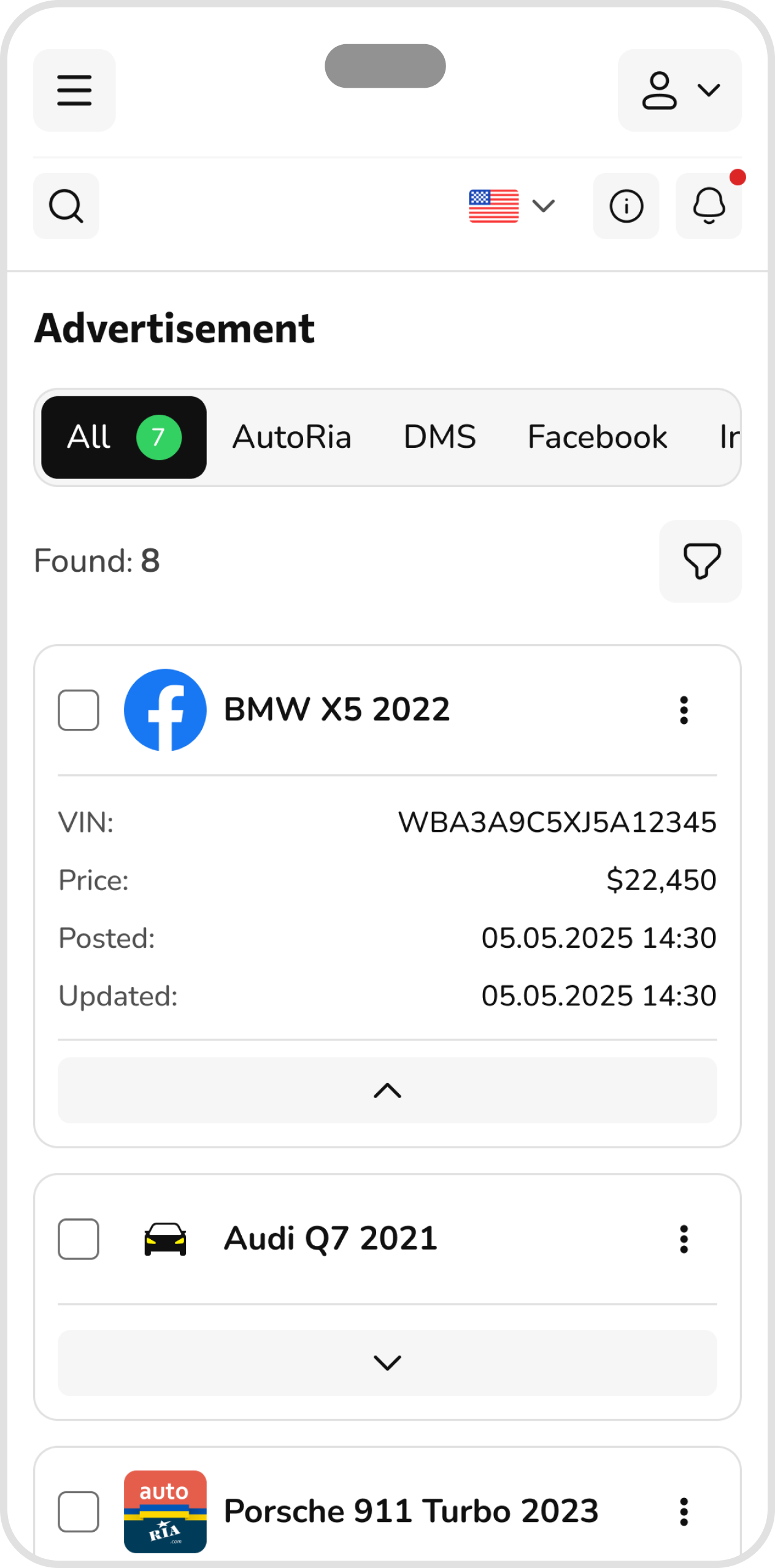 Add car details with a VIN decoder, update your stock and prices in one click.